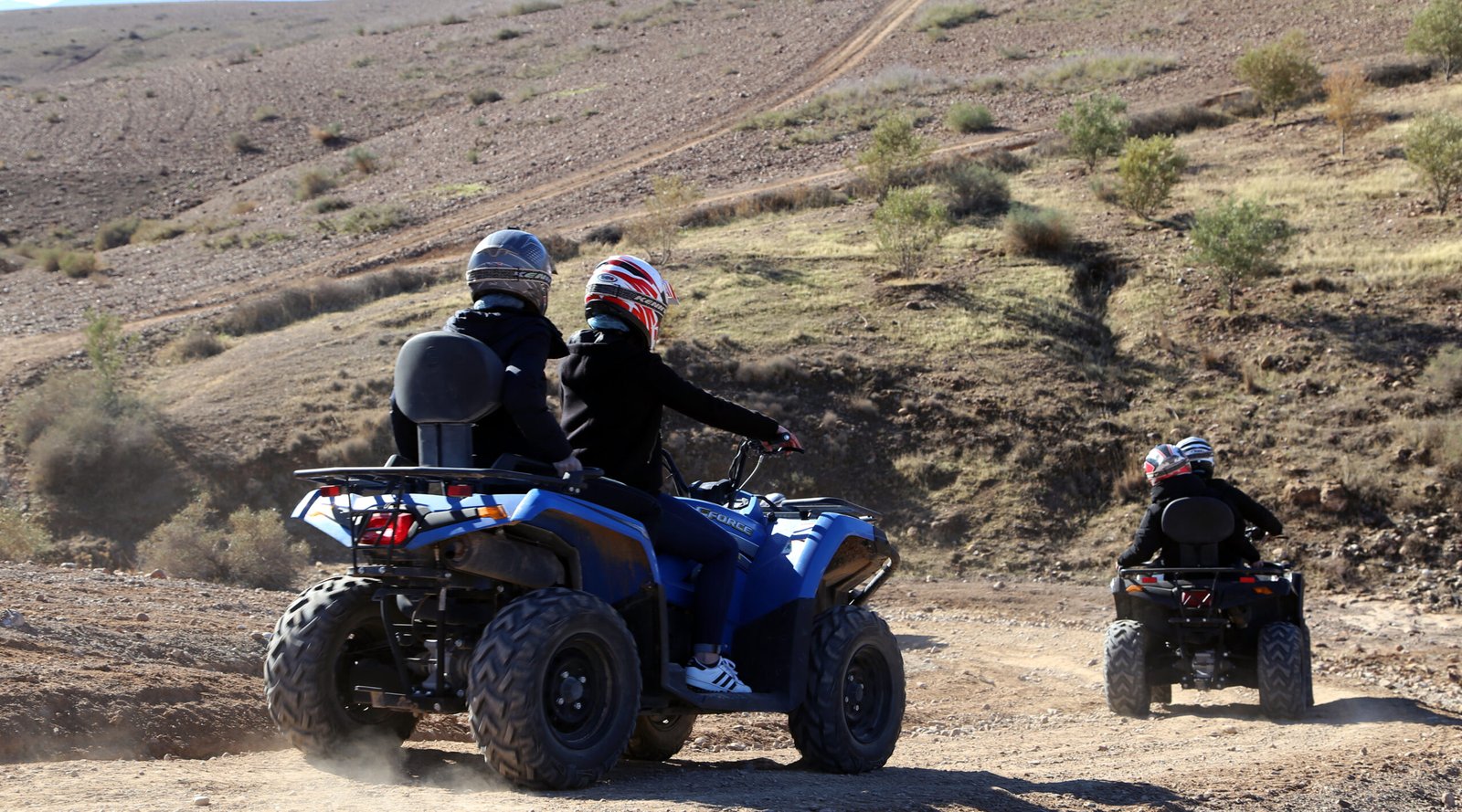 En début d’après midi, reprise des quads par des pistes traversant des pistes sinueuses vous conduiront directement vers le désert d’Agafay et ses collines arides qui ressemblent à des dunes sahariennes en direction de la base de départ.