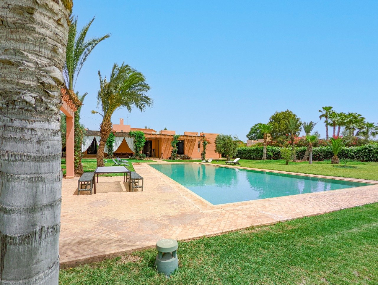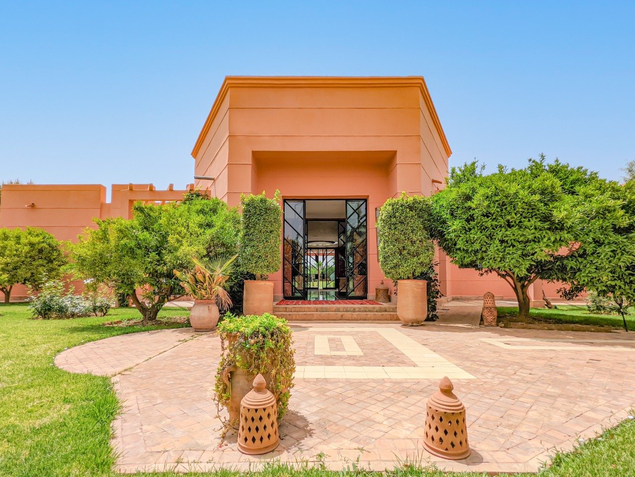 Cette magnifique villa se trouve aux portes des plus prestigieux golfs de Marrakech. Route de OUARZATE- 15 min du centre-ville