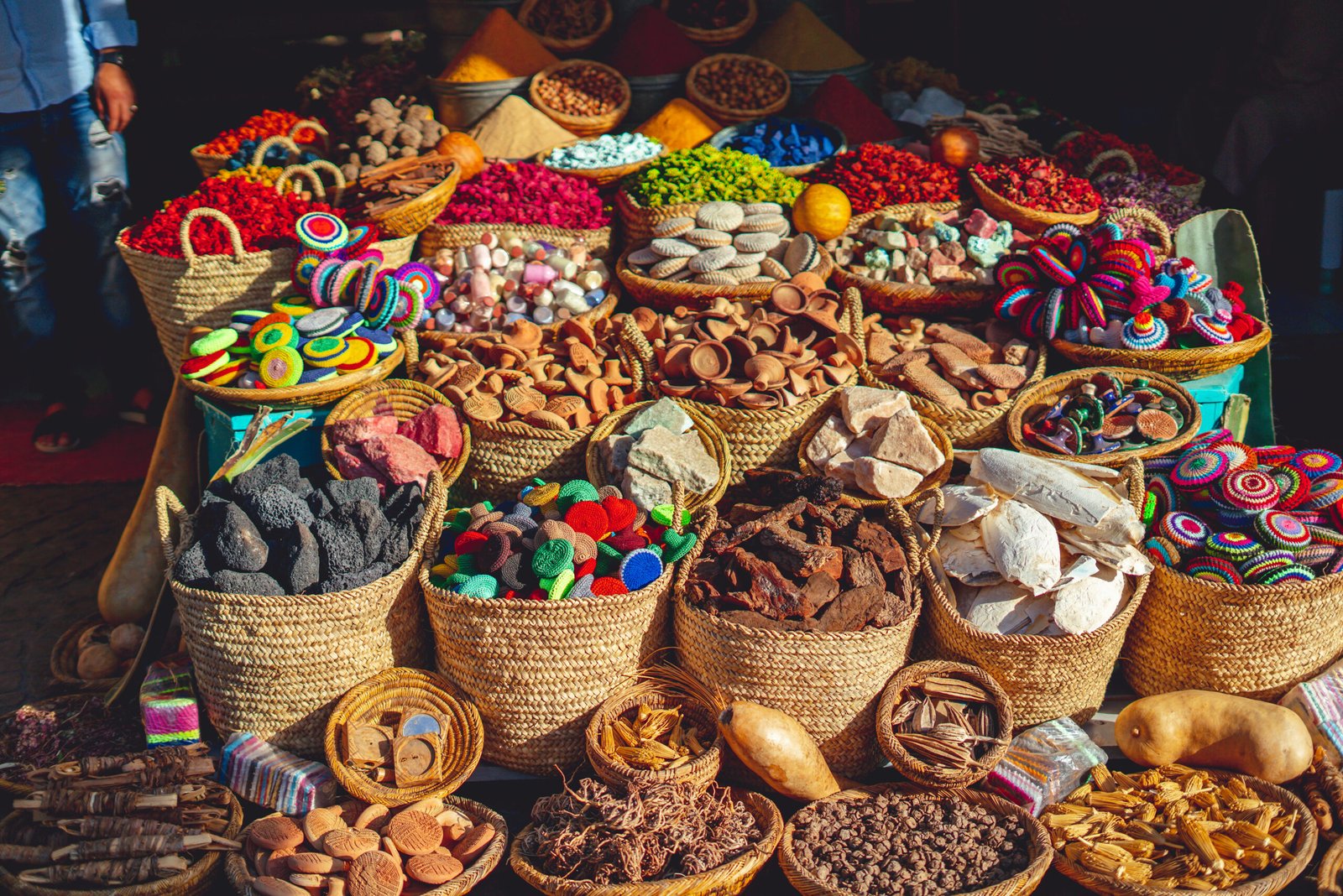 Explications très intéressantes sur la place Jamaa Lfna, puis départ de la visite à travers ses ruelles magiques. Visite des différents souks, de bijoux, de cuir, de cuivre, épices, tapis…